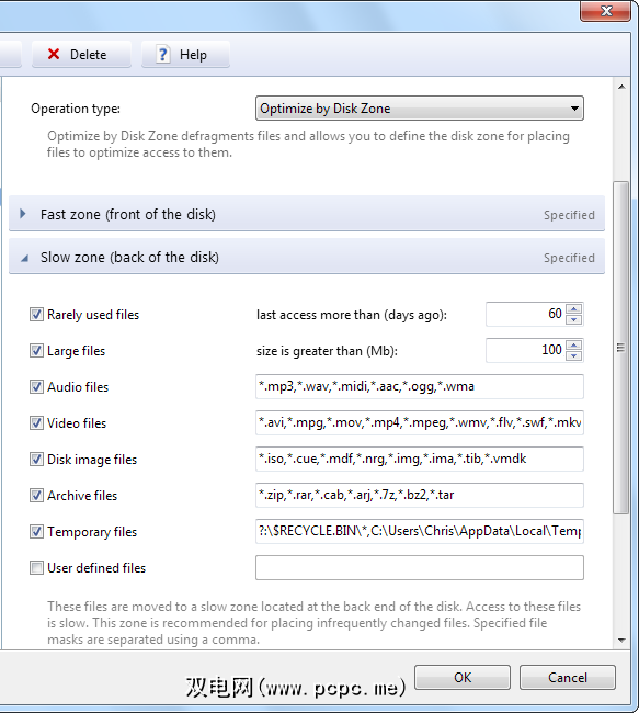 磁盘的不同区域具有不同的访问时间。默认情况下,Windows会在磁盘上放置文件,而无需考虑哪个文件属于磁盘的哪个区域,但是Auslogics Disk Defrag Pro可以通过各种参数来优化放置。例如,“按预取布局优化"配置文件使用Windows预取数据将常用的程序文件放置在磁盘的较快区域中。您还可以通过文件访问或更改时间进行优化-甚至手动指定哪些文件属于磁盘的哪个区域。 “按磁盘区域优化"配置文件包含将媒体文件放在较慢的位置,而将程序文件和其他系统文件放在较快的位置的默认设置。