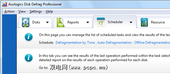 “调度程序"选项卡允许您安排碎片整理任务,设置自动碎片整理并安排发生的脱机碎片整理任务在启动时。您可以为每个任务指定不同的碎片整理配置文件和优先级。