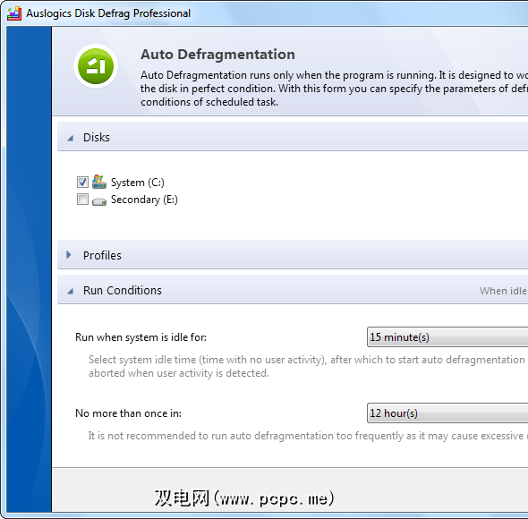自动碎片整理功能可以在您退出程序时自动对系统进行碎片整理(假设程序已打开)。这可以帮助您对文件系统进行碎片整理,而不会在使用计算机时降低计算机的运行速度。默认情况下,启用此功能后,在离开系统15分钟后,将开始进行碎片整理过程。当您移动鼠标或开始输入文字时,它将停止,仅在下一次离开计算机时恢复。