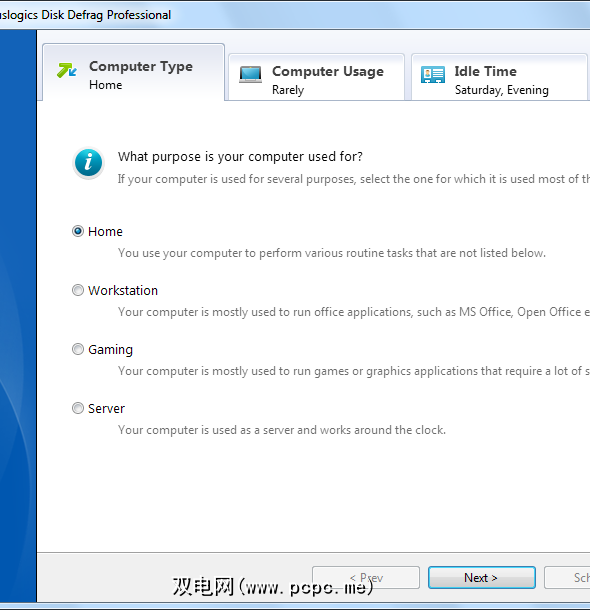 如果这些选项对您来说似乎有点麻烦,请使用巫师。它会问您几个问题,并为您的系统设置理想的计划碎片整理任务。点击“操作"菜单,然后选择“碎片整理向导"以启动向导。