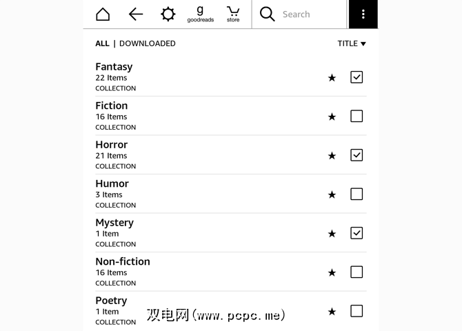 标题和作者都非常不言自明:他们都按选择的标准按字母顺序排列。收藏有点不同。您可以将您的书籍放入“收藏夹"(相当于Kindle的文件夹)中,我们稍后会讨论。当您按书名,作者或最近书进行排序时,馆藏中的任何图书都会仍显示在主图书馆列表中。无论您拥有多少个馆藏,这些排序方法都会始终在Kindle上向您显示每本书。
