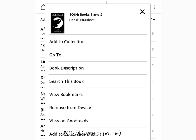 从此处开始,只需按从设备中删除即可。这就是您要做的!它说“从设备中删除"而不是“删除"的事实应该令人放心。您仍然可以找回那本书。 (如果您通过电子邮件发送了自己的文档,则可能会显示“删除"。在这种情况下,您需要重新发送电子邮件。)