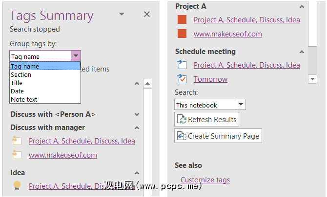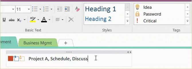 您可以在页面上添加多个标签,也可以嵌套标签。因此,如果您将OneNote用于待办事项清单,则可以为项目A ,项目B 和计划会议使用单独的标签强>。但是,您也可以同时使用 Project A ,计划会议和与管理人员讨论。