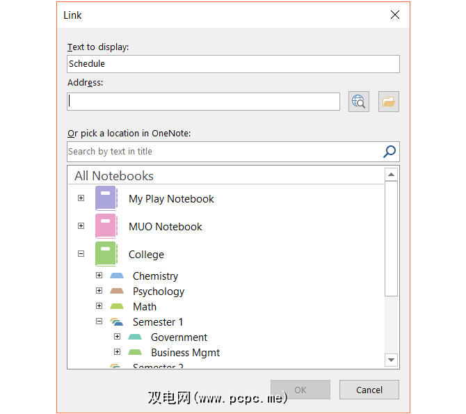 与Word和Excel等其他Microsoft应用程序一样,OneNote允许您将外部和内部链接。例如,如果要编译文章的参考站点列表,则可以将URL直接弹出到列表中。您还可以将文本从OneNote页面之一链接到计算机上的特定文件。