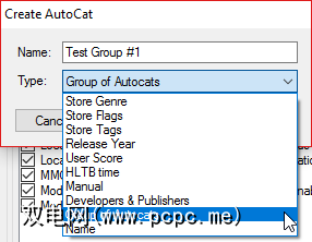 点击 Create 按钮(位于“自动目录"下方)。输入名称。我要使用第1测试组。从下拉菜单中选择自动猫分类,然后按创建。然后添加按标签,按用户评分和按年。完成后,点击保存所有更改。。然后从快速访问菜单中运行新创建的AutoCat。