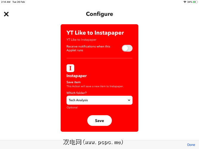 此小程序会将您喜欢的YouTube视频保存到Instapaper。