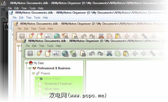 AllMyNotes Organizer是Microsoft OneNote的很好替代品。特别值得一提的是它的快速启动(因为该程序仅首先加载几千字节大小的树结构,而不是整个数据库)。