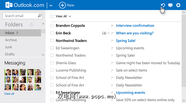 通过单击右上角的弯曲箭头或按Ctrl + Z可以访问新的撤消功能。这是偶尔不小心删除电子邮件或将其分类到错误文件夹中的时间。
