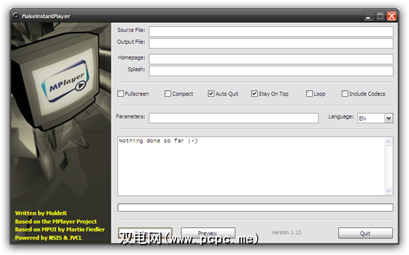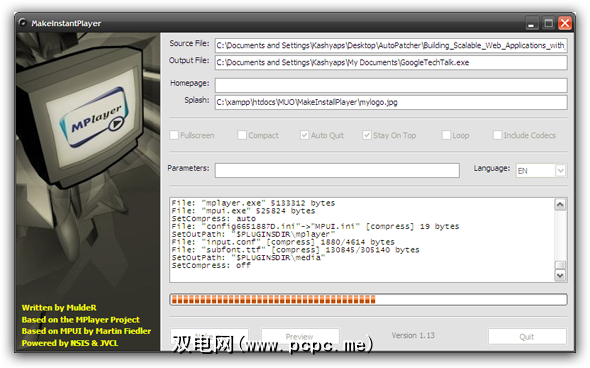 首先,下载并运行makeinstantplayer.exe。该软件不会添加任何注册表项,只会将文件提取到您选择的位置。然后,从安装时提供的位置运行makeinstantplayer.exe。您将看到以下内容: