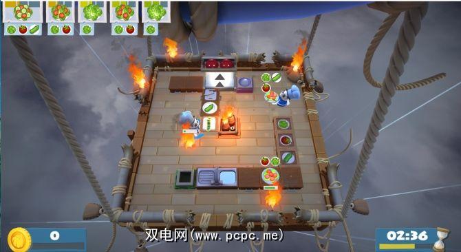 在某些Overcooked水平(例如下面的水平)中),您被迫扔食物。有些厨房在整个级别上都是永久性的,所以您必须自己动手。