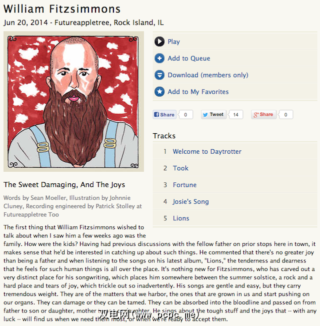 ,但这不仅仅是瑞典流媒体服务Spotify的现场音乐。使用Daytrotter时,很明显他们对音乐艺术有真正的尊重。每场表演都伴随着一幅手绘艺术作品(通常是艺术家的美丽水彩画)以及一篇有关表演的文章。