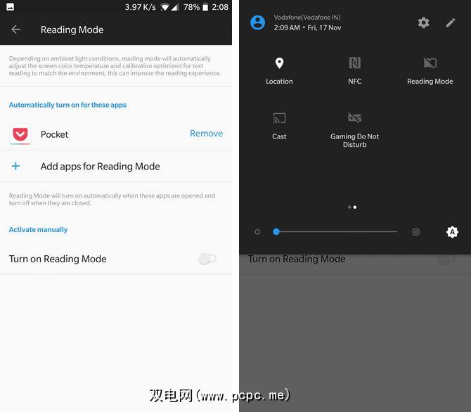 类似于游戏DND模式,您可以预先选择应用程序(例如Pocket或RSS阅读器应用)以在启用阅读器模式的情况下启动。为此,请转到设置>显示>阅读模式。您还可以从通知切换快捷方式中切换“阅读模式"。
