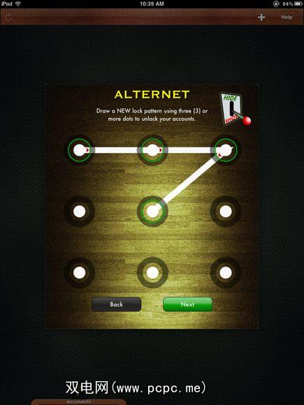 在下一个屏幕中,您将画出一种称为加长型的图案来解锁该帐户。您应该根据用户和所需的安全级别,使该模式变得容易或困难。许多iPad用户可能希望此锁定模式功能用于登录iPad本身。