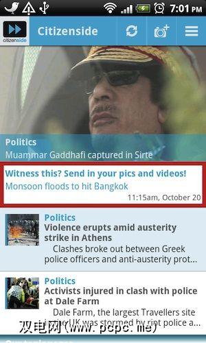 Citizenside具有iPhone和Android应用程序。[不再可用]可用,以便您可以尽快上传独家新闻。您还可以使用该应用程序查看正在发生的新闻,以及新闻媒体紧急需要哪些事件的照片。