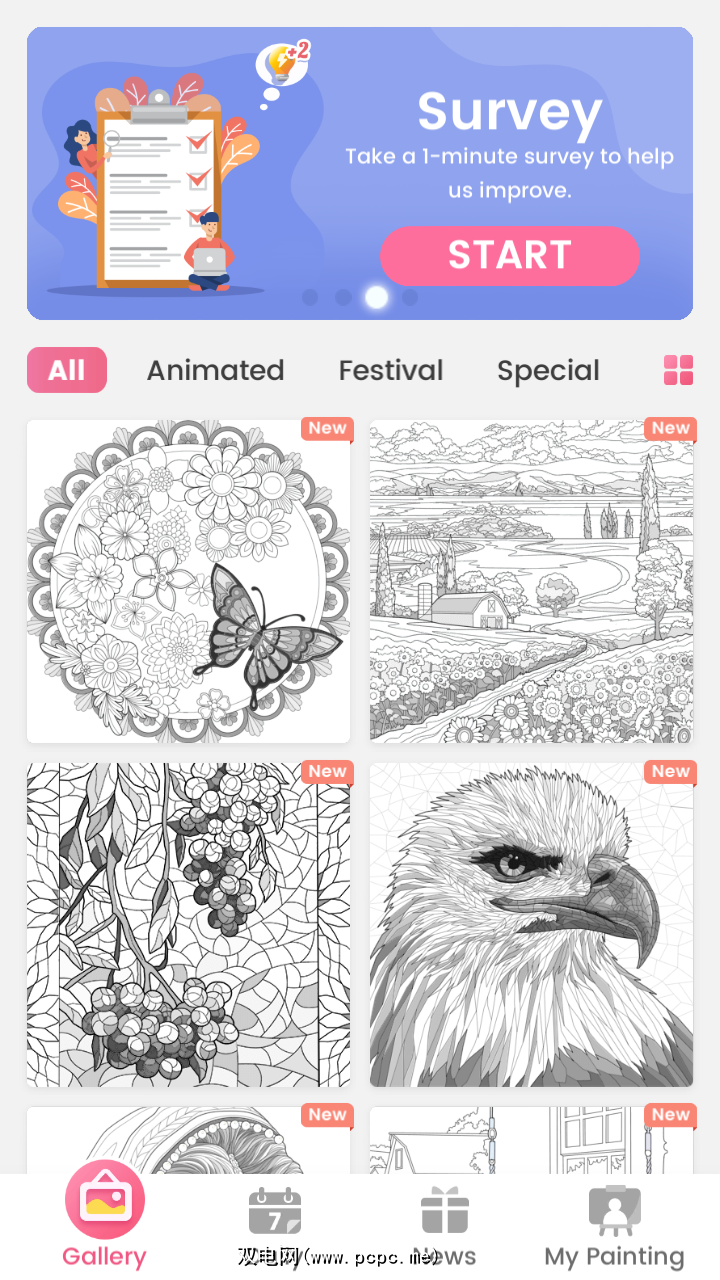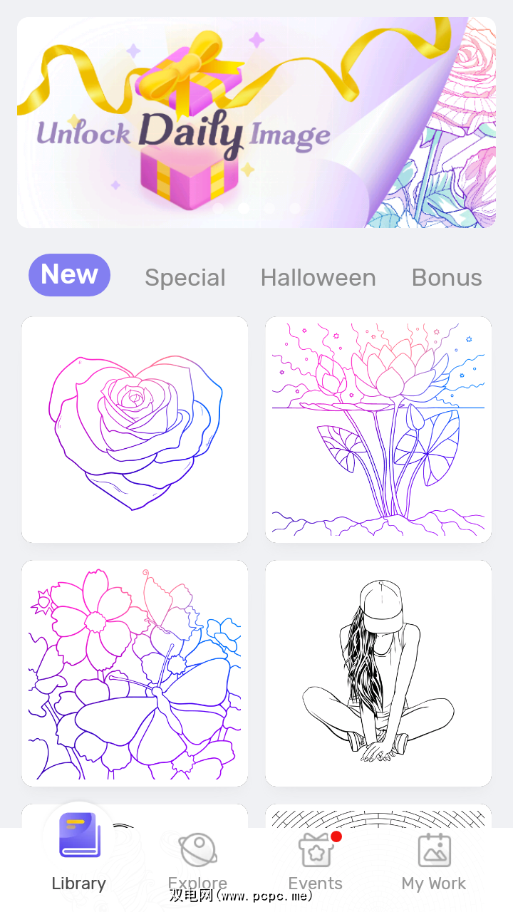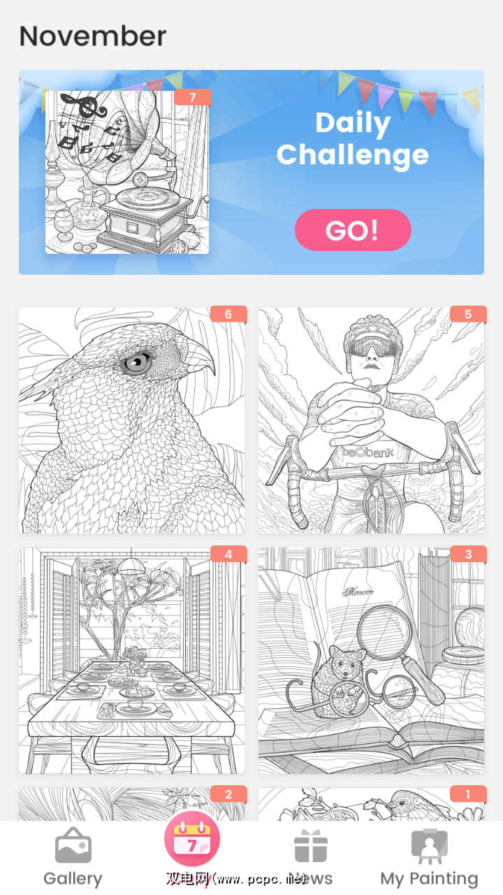 与此列表中的其他一些应用程序一样,此应用程序也具有每日任务功能来建立您的连胜纪录。它提供了大量的着色页和类别供您发现。除了内置设计,您还可以从您的画廊图像创建自定义图稿。