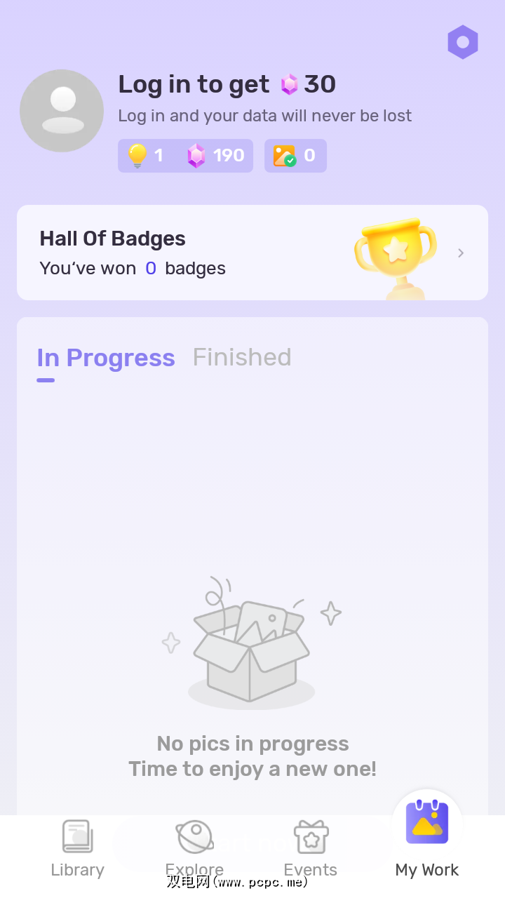 该应用程序提供了有用的提示,可在整个活动中为您提供帮助。您还可以查看您最近创作的作品、正在进行的作品以及已完成的作品。
