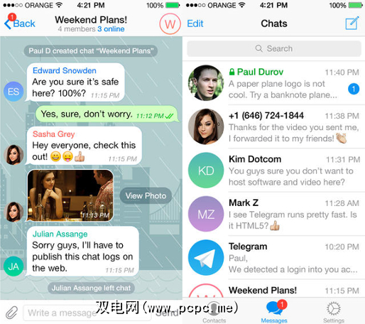 相反,我一直在听到有关Telegram的好消息,Telegram提供适用于iOS,Android和Windows Phone的免费应用以及PC的版本, Mac OS X,Linux,也可以通过浏览器访问。据我所知,它是WhatsApp的一个克隆,但其中添加了许多隐私设置。这包括加密您的消息,使用计时器销毁它们以及服务器遍布全球,因此该服务无法完全关闭从一个位置向下看(这里是FBI在看着您!)。类似的应用包括Signal和Wickr。