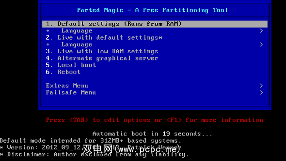 Boot Parted Magic,您首先会看到的是以下选项列表: