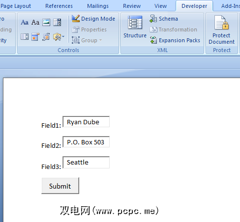 在此示例中,我将向您展示如何传递三个文本信息-3个文本字段内的值-直接发送到Word宏启动的Excel电子表格。