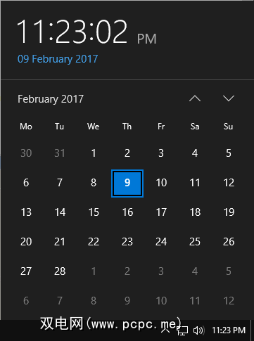 您可以在任务栏的托盘中查看系统时钟。它的确切格式取决于您的自定义设置,但是单击时间也会打开一个同时显示日期和日历的模式。