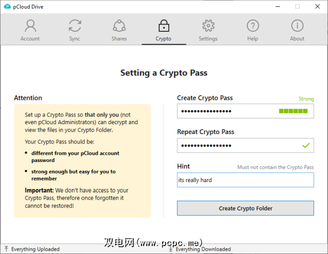 pCloud Crypto,然后,除非您输入正确的密码,否则请确保没有人可以访问设备上pCloud Crypto文件夹中的数据。此外,pCloud声明“作为服务提供商,它无法解密任何托管数据。"