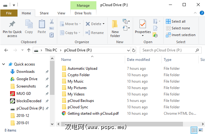 转到此PC 。您可能会在设备和驱动器部分下注意到新的 pCloud驱动器(P)。打开 pCloud Drive 文件夹,然后在其中找到几个其他文件夹。