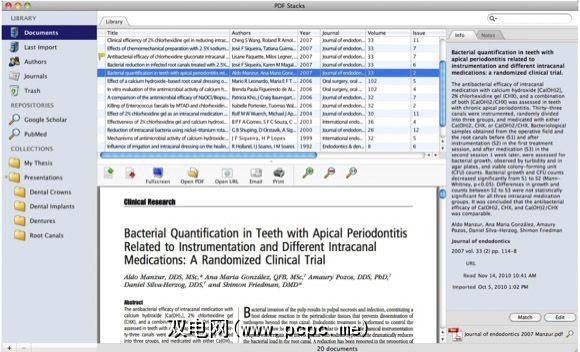 PDFStacks的方便之处在于您可以预览和打开库中的文档。您可以全屏阅读文档,也可以在单独的标签中阅读文档,以减轻桌面混乱。 PDFStacks不包含注释工具,但确实包含一个方便的弹出笔记本,您可以在检查器中或以全屏模式在单独的窗口中访问该笔记本。一个不错的好处是您的笔记也可以搜索。