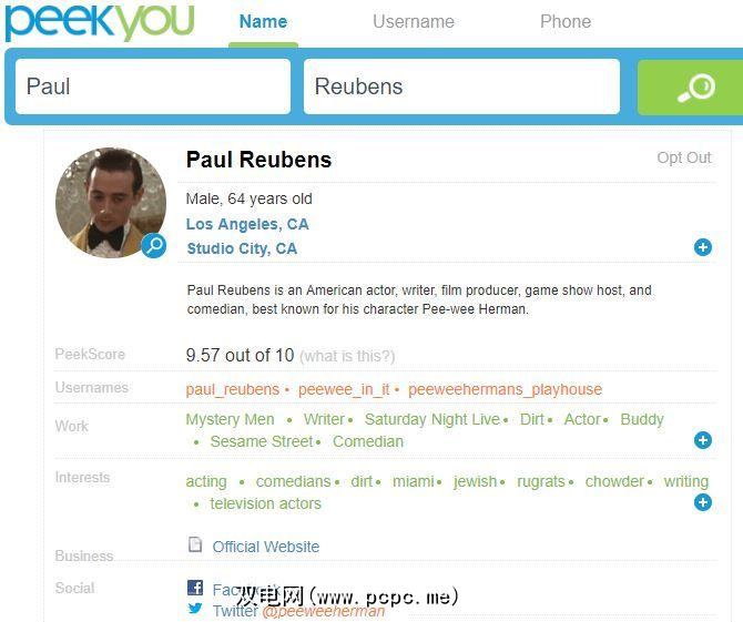 您的结果可能会有所不同,但总体而言,PeekYou是一个可行的选择有关某人的信息。如果对您没有帮助,请尝试查找该人的电子邮件地址。