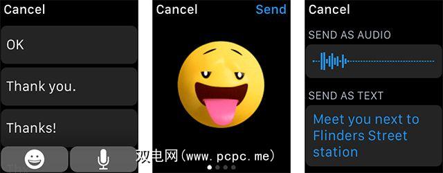 该笑脸可以旋转表冠以产生一些非常壮观的表情来控制它,尽管总体上没有那么有用。按下麦克风按钮并等待触觉蜂鸣,然后再说出您的消息。完成后,Apple会将其转换为文本,您可以选择发送录音或转录的消息。