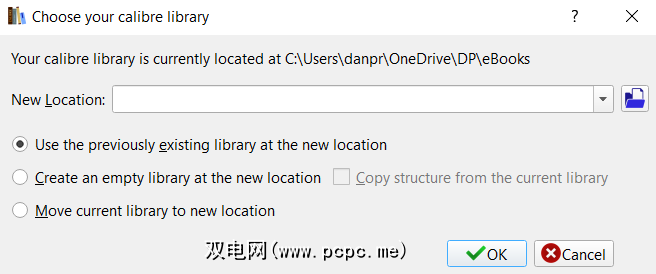 现在是时候告诉Caliber在哪里可以找到所有电子书了。根据您是已经使用Caliber在旧位置管理电子书还是第一次在Calibre中创建图书馆,过程会有所不同。