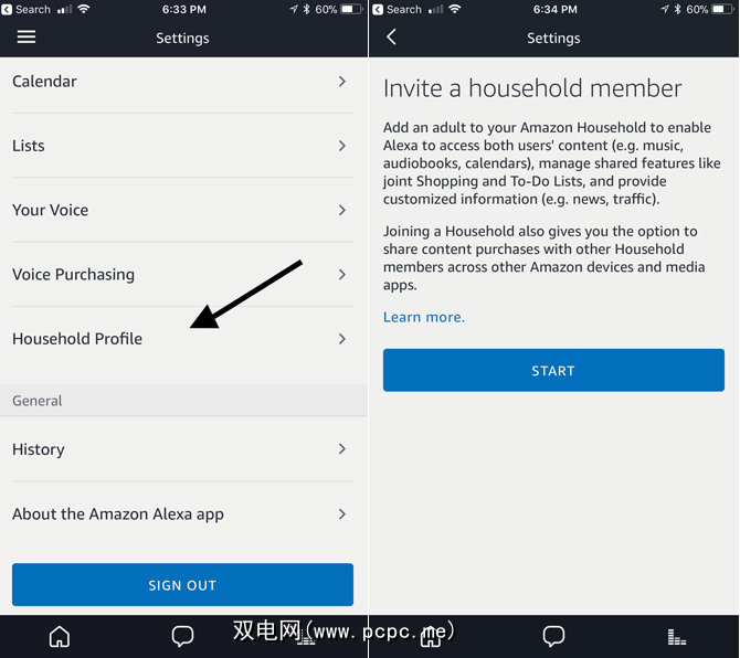 个性化Echo设备以处理多个用户的另一种方法是使用家庭资料。这样一来,您可以添加另一个拥有自己的Amazon帐户的成年人来访问您的Echo。