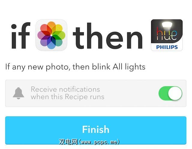 您的食谱“如果是iOS照片然后创建了Philips Hue"。选择完成以将其添加到您的食谱列表中。