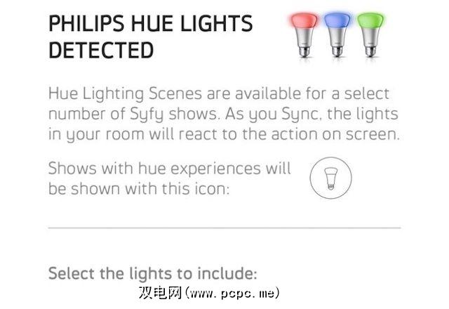 要在Syfy应用中同步灯光,您需要点击应用屏幕右上方的图标。在此处,选择同步我的灯光。您需要首次按照说明将应用程序连接到Philips Hue桥。完成此操作后,系统会要求您选择灯光以将其包括在内。接下来,选择同步灯光,以确认您的灯光已同步。选择完成。