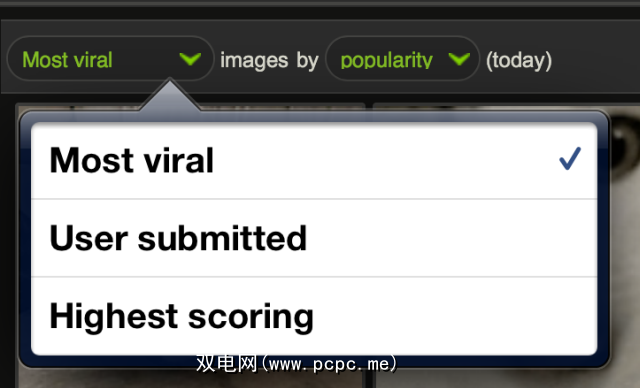 在屏幕顶部,您可以根据“病毒传播次数最多",“用户提交的次数"或“得分最高"来过滤照片,然后屏幕会自动重新排列。