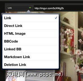 另外两个要指出的功能。首先,通过点击左上方的菜单,您可以获取图像的一系列选项,包括在Imgur网站上获得直接链接,获取HTML链接以及能够删除图像。