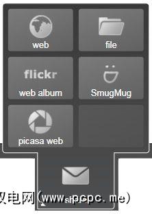共享“ "可以通过电子邮件链接,Flickr,Picasa或SmugMug轻松共享照片。我们还可以将选定的照片收集到桌面文件夹中,以通过“〜文件"共享选项进行共享。