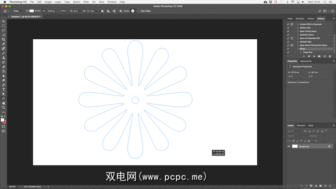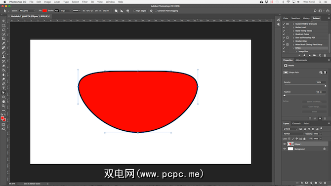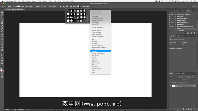 最后,是自定义形状工具。设置填充颜色和描边颜色,然后在选项栏中单击形状选项。在这里,您可以选择Photoshop提供的无数预设自定义形状之一。
