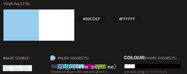 这就是 Pictaculous 的用处。上传任何图像,Pictaculous将分析并基于该图像生成调色板。此外,它将提供来自Kuler(上述)和Color Lovers(以下提及)的替代配色方案建议。