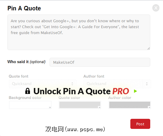 在下一步中,您可以编辑报价,告诉PinAQuote谁说的话,如果您有1.99美元的备用版本,甚至可以更改引号的字体和颜色。