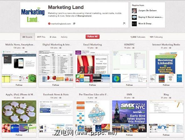 有了Google +,Twitter和Facebook董事会,社交媒体极客肯定会希望关注Pinterest上的科技博客Marketing Land。除了主要的社交媒体网络外,您还可以找到涵盖互联网营销和SEO相关所有事宜的董事会。