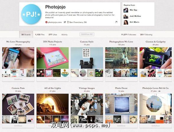 Pinterest上必不可少的董事会根本没有任何竞争任何摄影极客。 Photojojo的Pinterest董事会不辜负该网站的声誉。 Photojojo Pinterest板不仅包含该网站自己的精美产品,还展示了炫酷的摄影,有趣的摄影报价,甚至还举办偶尔的竞赛,您可以在其中赢得一些Photojojo赃物。