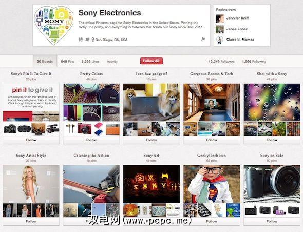 Sony的Pinterest板展示了他们最好的产品,并且在使观众处于由小工具引起的欲望迷雾方面做得很好。借助产品图片和Sony产品的作用,这些板不仅可以展示Sony自己的商品,而且还可以做更多的事情。如果您关注索尼,您还将获得令人垂涎的食物,妈妈们的模因,甚至可以在慈善上有所作为。对于Sony在“固定给它"板上的每个图钉,他们将向慈善机构捐款1美元。