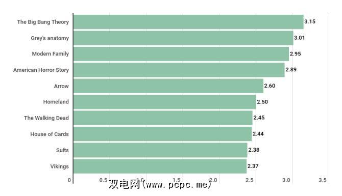 在2018年(见上表),该荣誉获得了FX的《美国恐怖故事》的认可,而在2017年,大爆炸理论则位居榜首(见下图)。这些图表显示了每个节目的恶意文件在受影响用户数量中的比例。