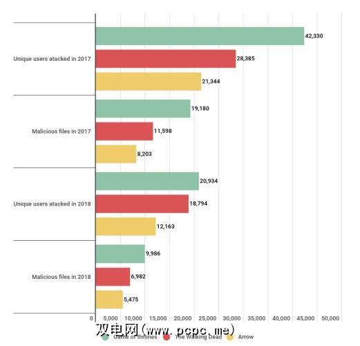 尽管《权力游戏》和《行尸走肉》会定期列出最多数量的恶意文件和感染,但都没有显示出最有效的恶意软件伪装
