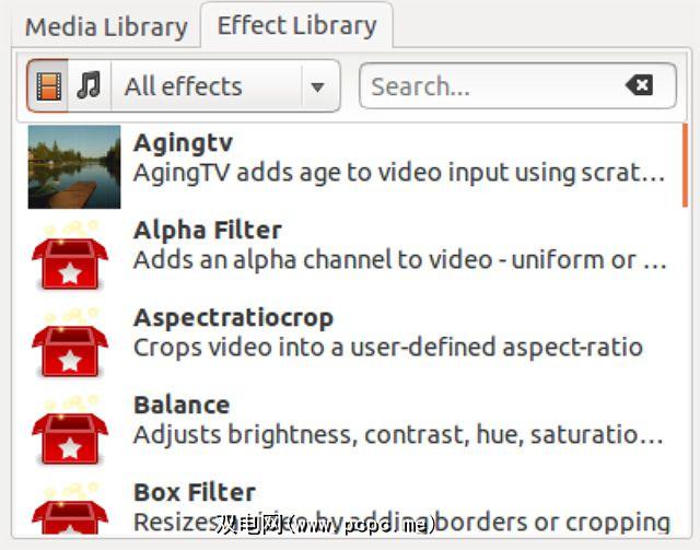 在撰写本文时,有128种不同的效果,包括伽玛校正,shagadelic,gdkpixbuf叠加(您可以在其中将图像放置在视频顶部),裁剪,翻转