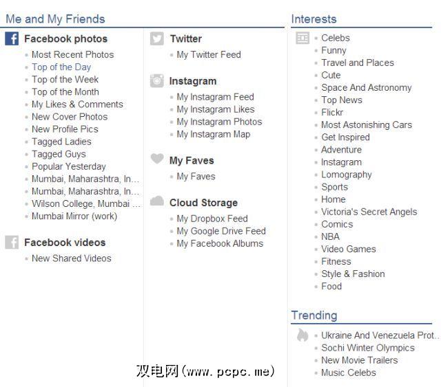 例如,有一个专门针对索契奥运会的feed,而另一个feed提供了最新的电影预告片。同样,它是具有相同收藏夹和共享选项的相同布局。
