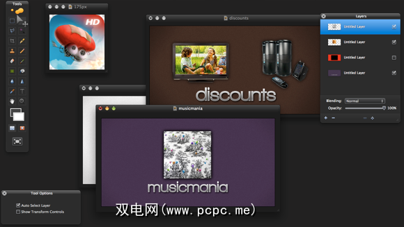 您知道您可以免费获得30天的Pixelmator功能齐全的免费试用版吗?立即下载并尝试一下。您会注意到的第一件事是它的时尚界面-它属于Mac。其他一切都就位了。与Photoshop不同,它没有边界窗口。而是为您提供了浮动工具栏,您可以根据需要随意重新排列它们。它与OS X紧密集成,可让您访问iPhoto,智能相册,iSight和Aperture。