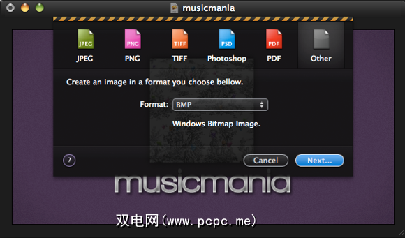 Pixelmator支持流行的图像格式,并允许您轻松地将其导出为JPEG,PNG,TIFF,PSD和PDF单击即可。但是,您看不到的是它可以导出的其他格式:WEBP,GIF,PICT,ART,AVI,AVS,BMP,DNG,DOT,DPX,EPDF,EPD,EPI,EPT,FAX,FIG,FITS, FPX,GPLT,JP2,MAN,MONO,MNG,MPEG,M2V,MPC,MSL,MTV,MVG,OTB,PCL,PCX,PDB,PDF,PFA,PFB,PGM,PICON,PIX,PNM,PPM,PS, PS2,PS3,PTIF,PWP,RAD,RLA,RLE,SCT,SFW,SGI,SUN,TGA,TIM,TTF,UIL,UYVY,VICAR,VIFF,WBMP,WPG,XBM,XCF,XPM。