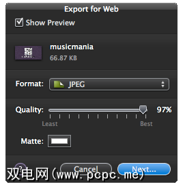 如果您准备准备在线共享图像,Pixelmator将为您提供保存JPEG,PNG或GIF的网络优化版本的选项。