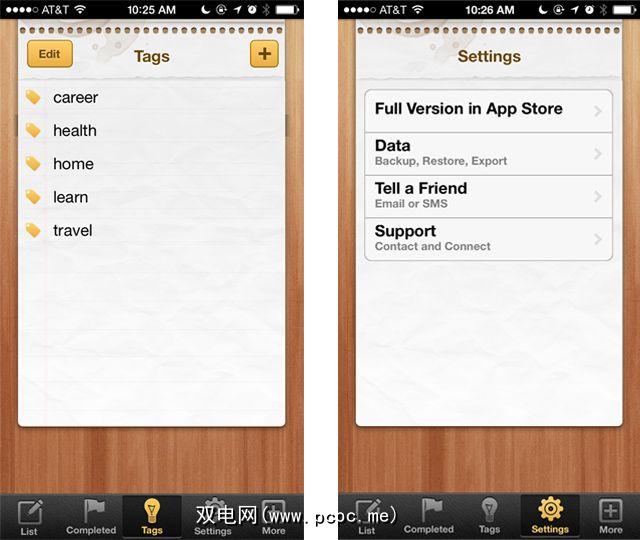 “存储桶列表"的其他一些功能包括标记,内容的iTunes备份以及导出文本文件的功能或PDF版本的列表添加到iTunes File Sharing。